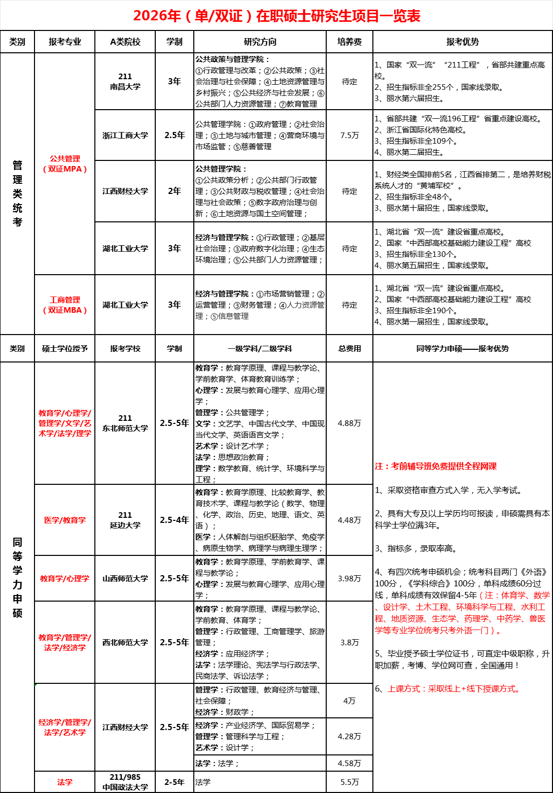2026年(單雙證)在職碩士研究生招生項(xiàng)目總覽