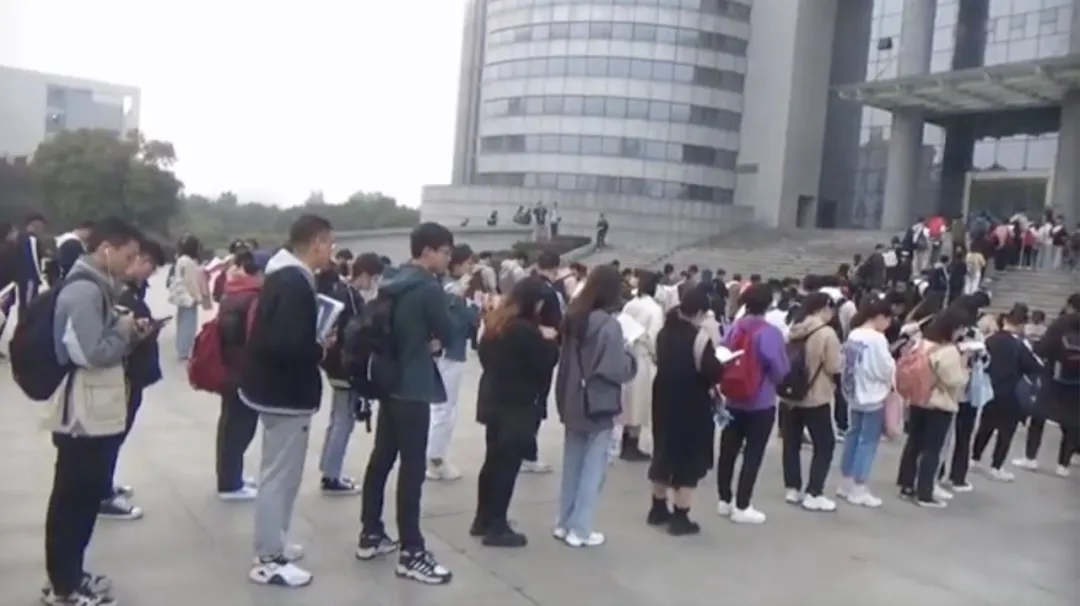 △安徽六安,皖西學院,考研學子們正在進圖書館。