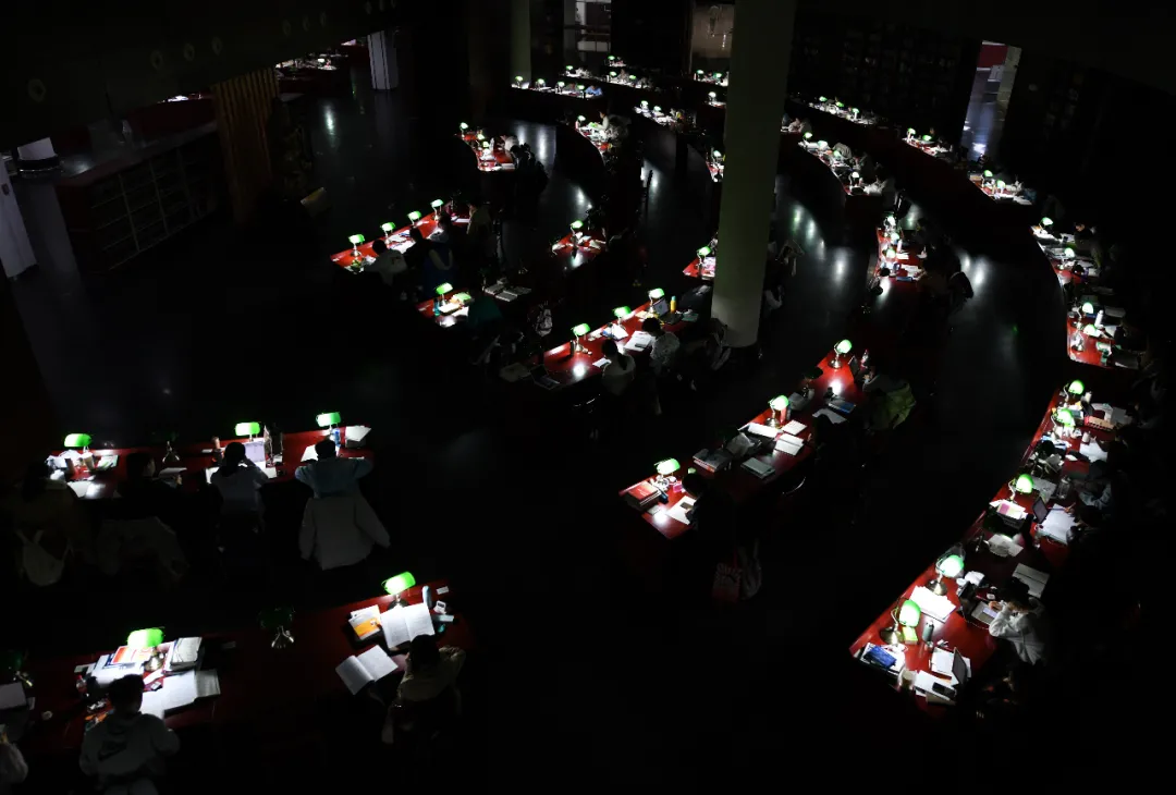 △山西大學塢城校區(qū)圖書館、文科樓和理科樓里,隨處都能看到準備考研的同學在挑燈夜讀。