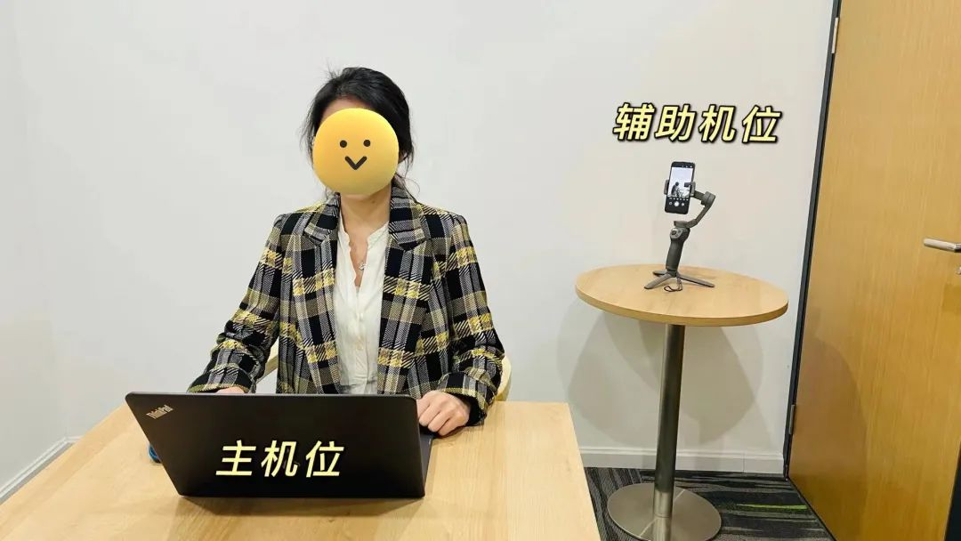 2020年線上復(fù)試,幾乎所有學(xué)校都要求“雙機(jī)位”,部分學(xué)校要求“三機(jī)位”。所謂雙機(jī)位,即一臺主機(jī)位(電腦)用于面試,一臺輔助機(jī)位(平板或手機(jī))從考生45°側(cè)后方拍攝,正對主機(jī)位屏幕,兩臺機(jī)位視角可以360°覆蓋面試環(huán)境。