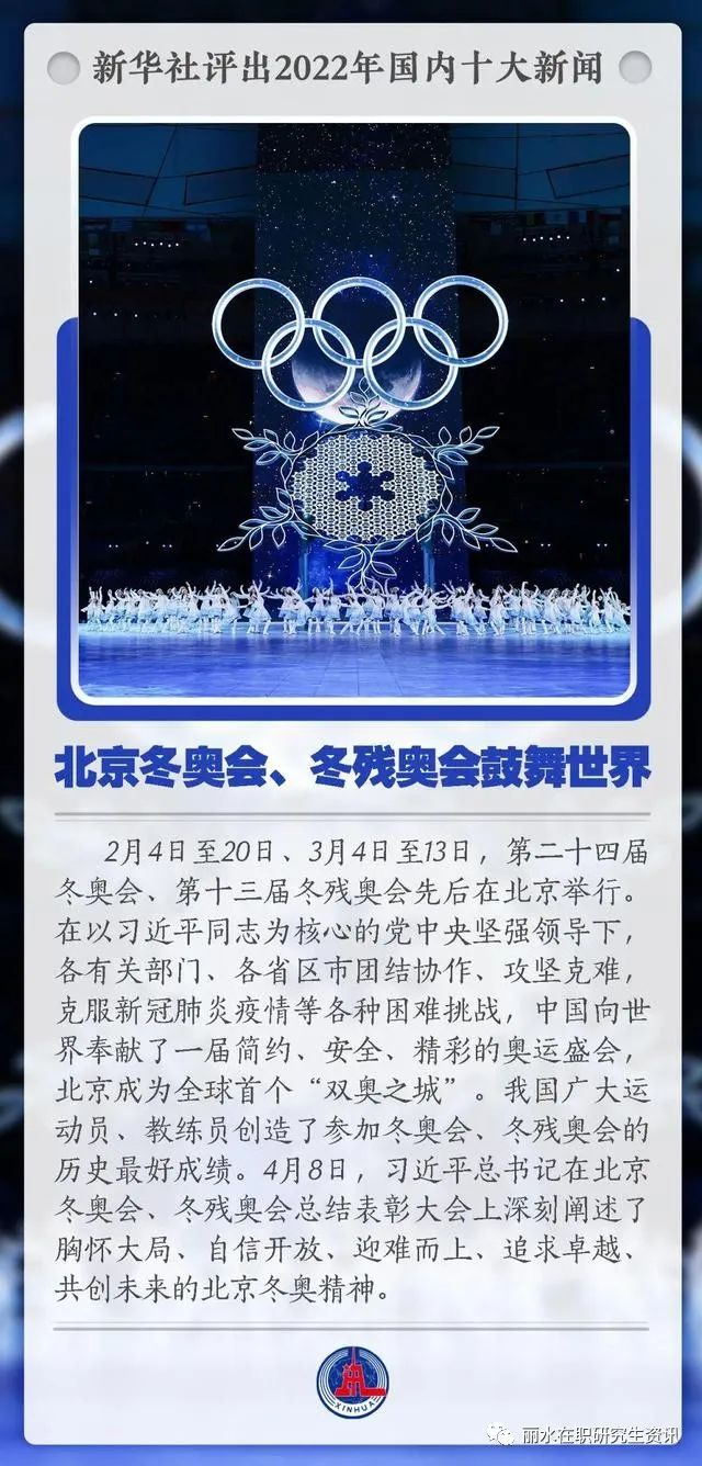 2月4日至20日、3月4日至13日,第二十四屆冬奧會、第十三屆冬殘奧會先后在北京舉行。在以習近平同志為核心的黨中央堅強領導下,各有關部門、各省區(qū)市團結協(xié)作、攻堅克難,克服新冠肺炎疫情等各種困難挑戰(zhàn),中國向世界奉獻了一屆簡約、安全、精彩的奧運盛會,北京成為全球首個“雙奧之城”。我國廣大運動員、教練員創(chuàng)造了參加冬奧會、冬殘奧會的歷史最好成績。4月8日,習近平總書記在北京冬奧會、冬殘奧會總結表彰大會上深刻闡述了胸懷大局、自信開放、迎難而上、追求卓越、共創(chuàng)未來的北京冬奧精神。