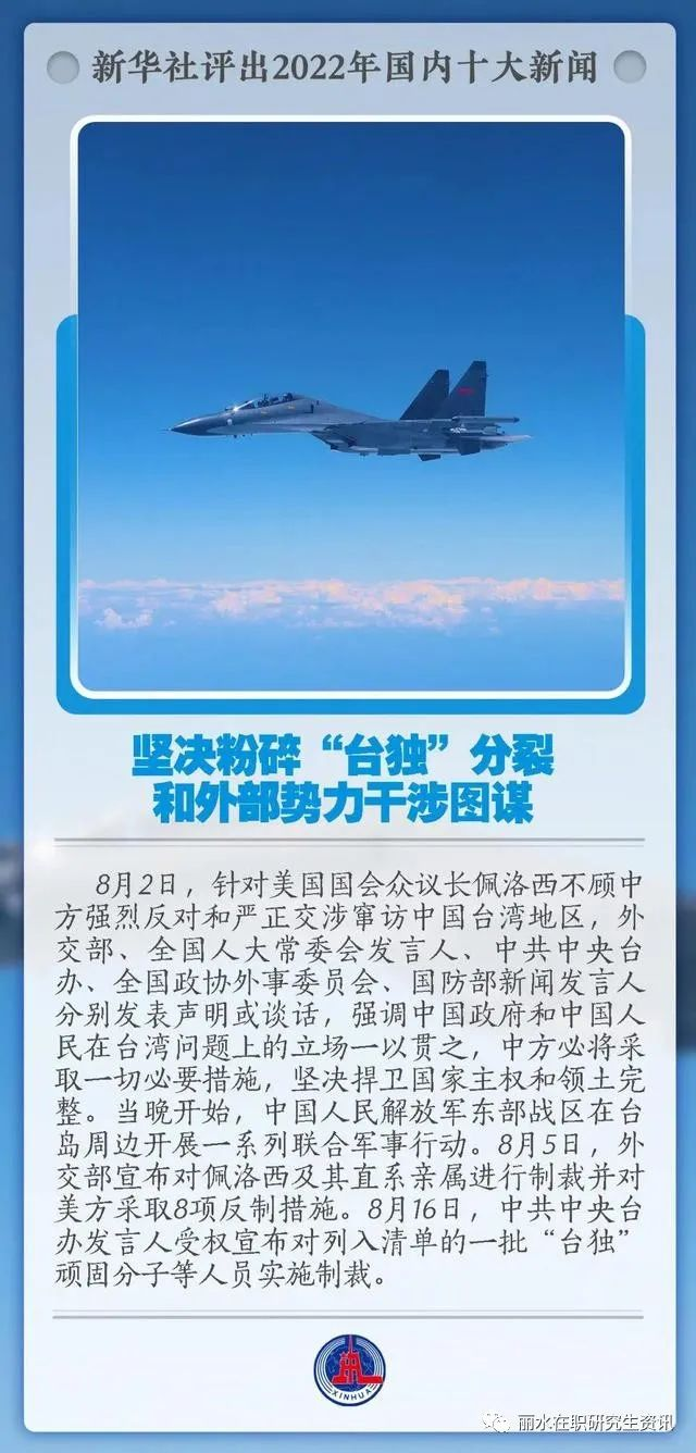 8月2日,針對美國國會眾議長佩洛西不顧中方強烈反對和嚴正交涉竄訪中國臺灣地區(qū),外交部、全國人大常委會發(fā)言人、中共中央臺辦、全國政協(xié)外事委員會、國防部新聞發(fā)言人分別發(fā)表聲明或談話,強調中國政府和中國人民在臺灣問題上的立場一以貫之,中方必將采取一切必要措施,堅決捍衛(wèi)國家主權和領土完整。當晚開始,中國人民解放軍東部戰(zhàn)區(qū)在臺島周邊開展一系列聯(lián)合軍事行動。8月5日,外交部宣布對佩洛西及其直系親屬進行制裁并對美方采取8項反制措施。8月16日,中共中央臺辦發(fā)言人受權宣布對列入清單的一批“臺獨”頑固分子等人員實施制裁。