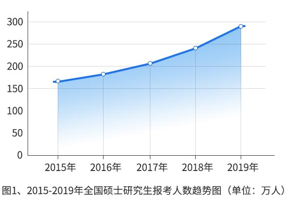 2018年12月23日,又一年的考研大戰(zhàn)開始,這一年的考研人數(shù),再一次變成了“歷史新高”。從教育部公布的數(shù)據(jù)來看,2019年全國考研報(bào)名人數(shù)達(dá)到了史無前例的290萬人,比2018年考研人數(shù)增加了52萬人,增幅達(dá)到了21.8%,考研增加人數(shù)和增長率均為近年來最高。從上圖中我們可以看出,近5年,考研人數(shù)逐年增長,同2015年的165萬人相比增加了125萬人,研究生報(bào)考人數(shù)的快速上漲也引發(fā)了社會(huì)的廣泛關(guān)注。