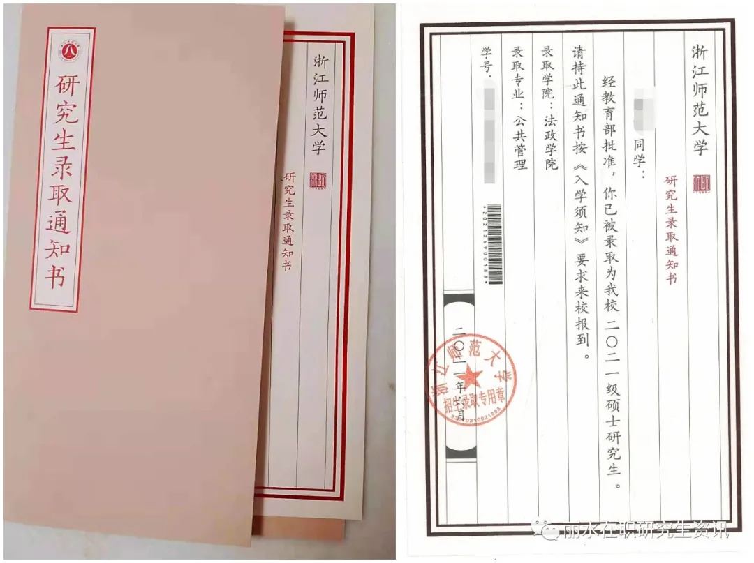 2021年浙江師范大學(xué)研究生錄取通知書,